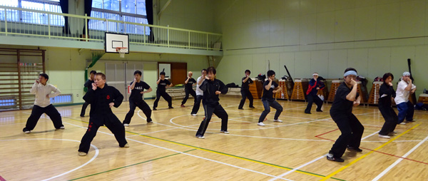 2016年締稽古と忘年会 練拳 2016年12月24日 いよいよ年末が近づいて参りました。 12/23に、開門拳社の締稽古と忘年会を行いました。 基本功をみっちり練習してから、班分けしました。 六合花槍などを、練習しました。 今年11月に孟村で授与された、開門拳社の「公式伝習館の認可盾」と「会の旗」です。 締稽古の後に、忘年会を行いました! 楽しいひとときを、過ごしました。 来年も、頑張って行きましょう! [4回]