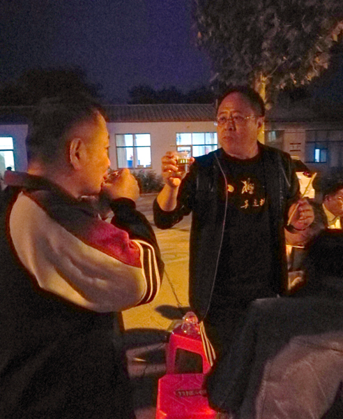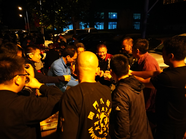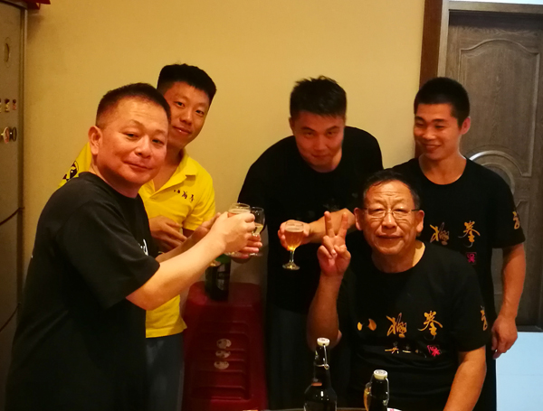 楽しい孟村 交流 2017年11月04日 孟村では、毎日宴会です。 呉連枝老師と、昼間から白酒を飲みます。 師父を囲んで、師侄たちと。 師父のお誕生日の、野外バーベキューパーティーです。 師兄弟やお客さんたちと乾杯! お酒ばかり飲んでいるようですが、一応練習もしています。 九宮桩です。 [6回]