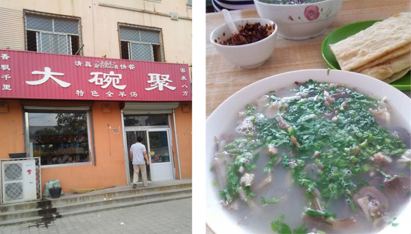 今日の朝食は、近所にある行きつけの「羊湯」(羊肉のスープ)のお店に行きました。