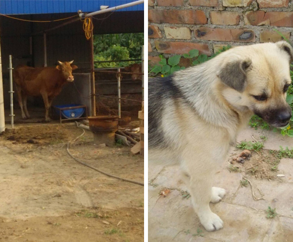 ところで、訓練センターでは牛を飼っており、犬や猫もいます。