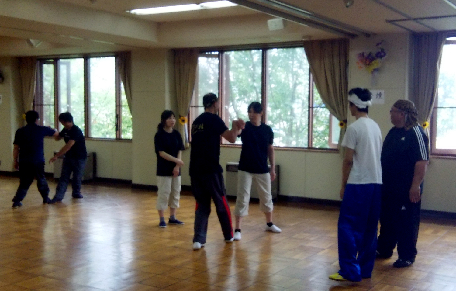 北海道講習会! 練拳 2015年08月25日 開門拳社北海道支部主催による、講習会が行われ、私も講師として伺って来ました。 基礎から徹底的に練習します。 参加者全員で。 楽しい宴会です。 料理も豪華でした。 最終日は参加者の希望により、劈掛拳(抹面拳)を指導しました。 上手な人を見ると、華麗な套路ですが、自分で行うと大変な事が参加者はよくわかったようです。 旭川は初めて訪れた土地ですが、静かで涼しく、風景も綺麗でとても良い所でした。 私を講師として呼んで下さった北海道支部長を始め、参加者の皆様ありがとうございました。 [6回]