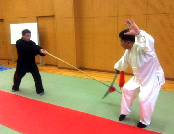 関西講習会、前半円満結束了! 練拳 2015年11月24日 11/21から始まった、渡邉先生が主催される呉連枝老師の講習会、前半無事終了しました! 劈掛拳、単打、対打、六肘頭と盛り沢山の内容で大変いい勉強をさせて頂きました! 渡邉先生との対打を、修正してくださる呉老師 呉老師の日本の宝物、女子部にも熱心なご指導を! [9回]